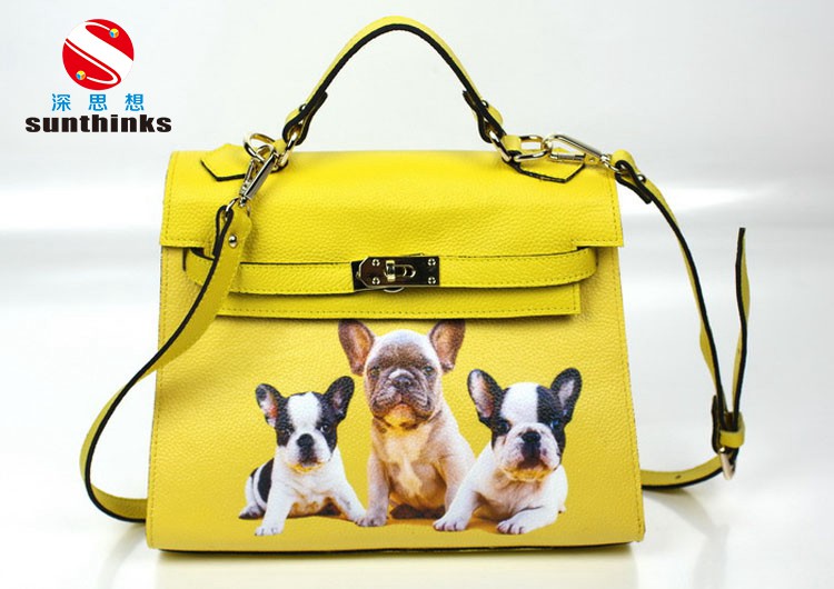 | 皮革彩印 賣點: 真皮、PU、人(rén)造革等各種材質的(de)圖案印刷,打印色彩<₹好(hǎo)固化(huà)快(kuài),冷(lλΩ ěng)凍後不(bù)變形,折彎後印刷層不(bù)開(kāi)開(kγ≠'āi)開(kāi)裂,耐刮耐磨。